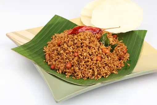 Pulihora makes for a delightful and tangy South Indian rice dish. It's often served as a part of festive meals and can be enjoyed on its own or with a side of yogurt or pickle.